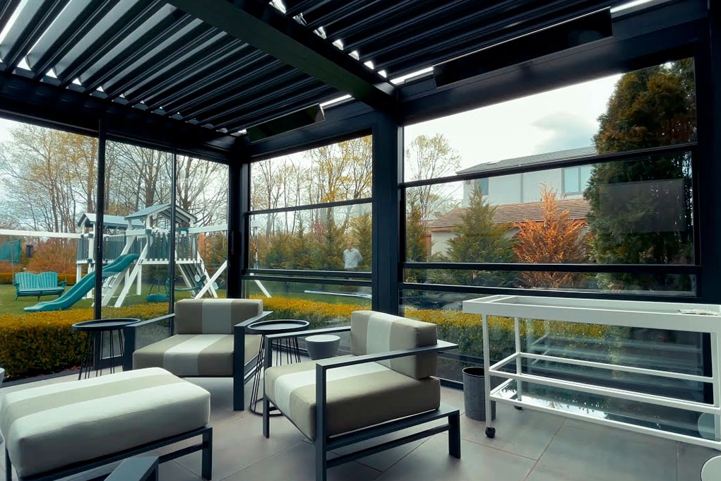 Это практичное решение, сочетающее эргономику и актуальный дизайн. Вид гильотинного остекления зависит от сезонной функциональности помещения, где планируется установка.