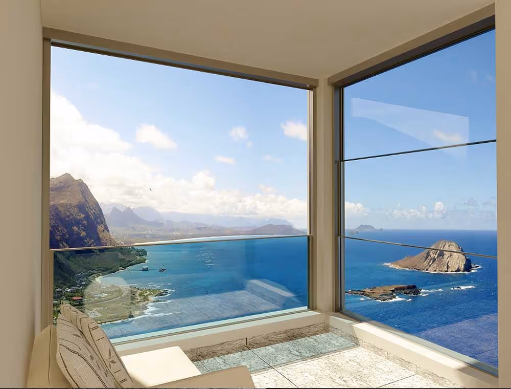 Раздвижные окна вертикального типа обеспечивают максимальное естественное освещение, сохраняя ощущение открытости пространства и поддерживая комфортный микроклимат.